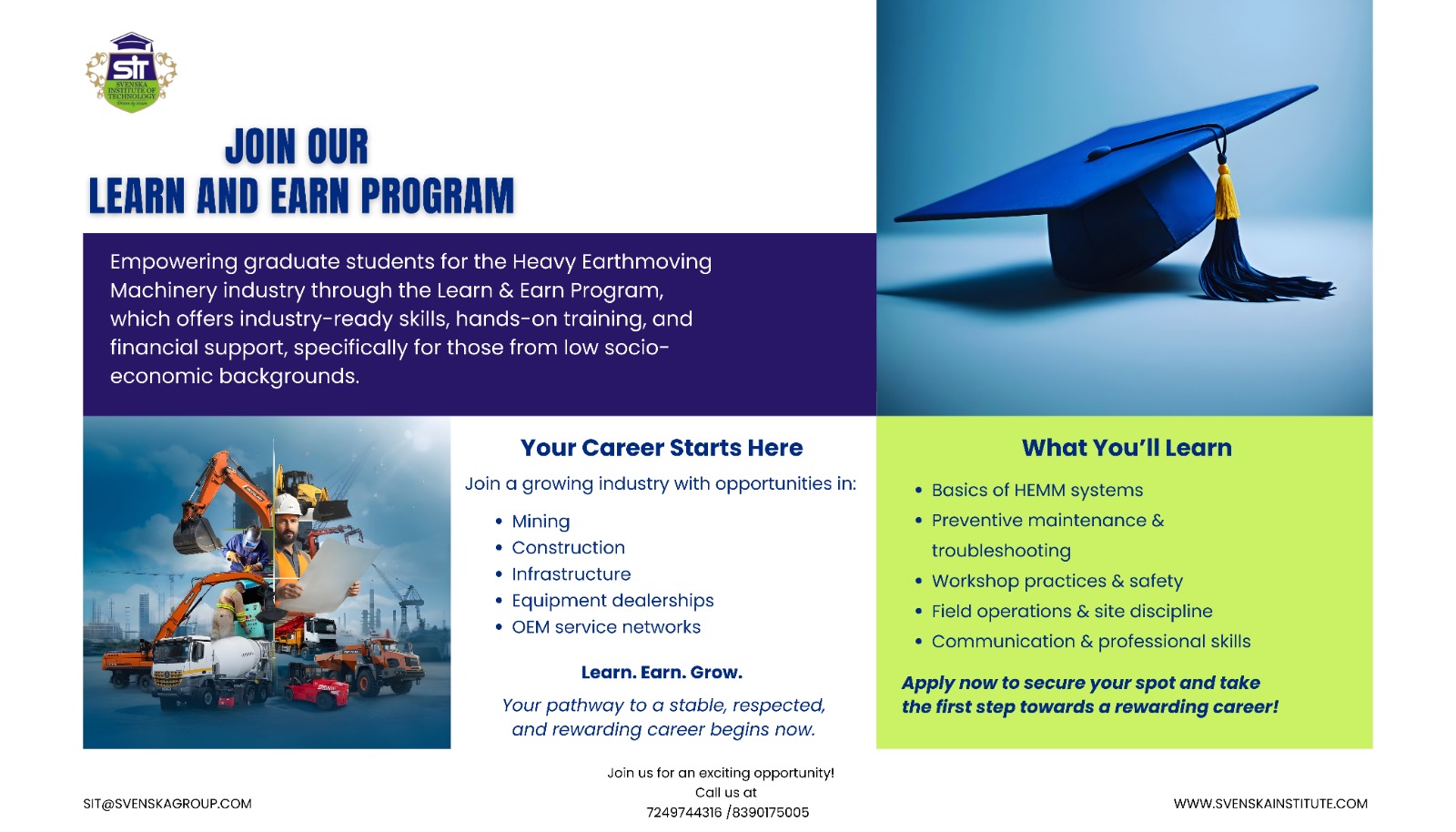 Join Svenska Institute’s specialized training programs designed to equip you with practical hands-on skills, strong technical knowledge, and pathways to professional growth in the global heavy equipment industry.